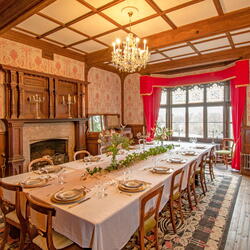 After shooting concludes, relax by the fire in the Abbey’s grand dining room for a three-course early supper with wine, port and cheeseboard. Minimal walking is required between pegs, and a gator is available for ease of movement.