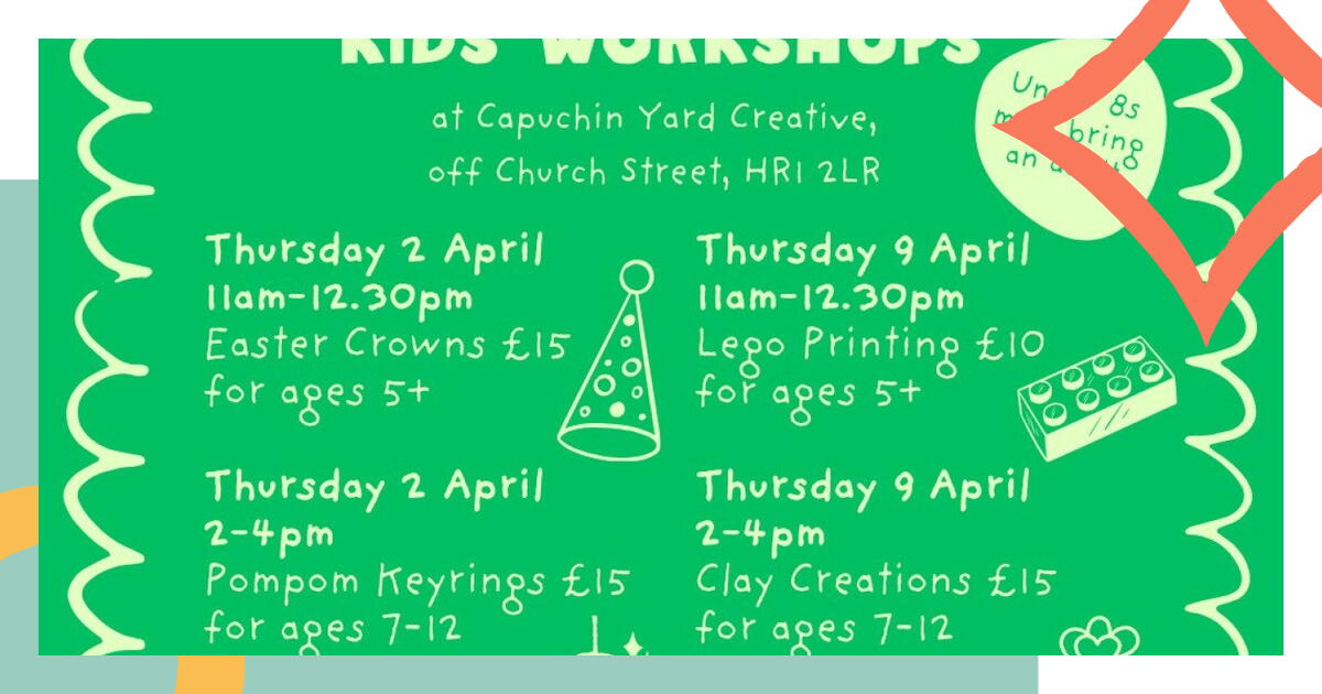 Creative Juice is running craft workshops sessions at Capuchin Yard Creative, off Church Street, Hereford, HR1 2LR. The groups will be small and there are limited places.