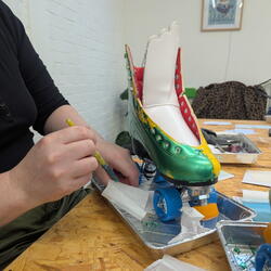 Give your old footwear a dazzling new life in our Shiny Shoe Workshop! This hands-on creative session teaches you how to transform tired, worn shoes into eye-catching, shimmering statement pieces using long lasting metallic transfer foils.